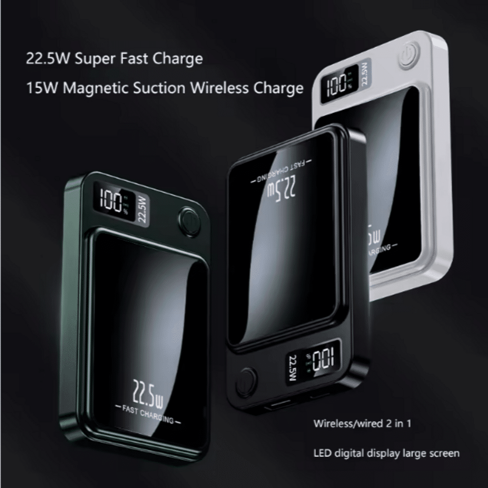 მაგნიტით მუშაობს აიფონებზე 12დან ზემოთ. მუშაობს როგორც მაგნიტის მეშვეობით, ისე კაბელით. 10000mah.